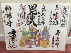七福神の描かれた色紙に 7か所からいただいてきた 御朱印色紙 ♪