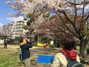 電車とおりを横切った 桜のタクサンある公園 ♪
