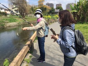 県立図書館横の道を 釣り師を横目に 江津湖中心部へと歩く ♪♪