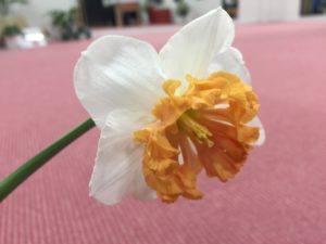 そんな一日に変化があったのは、スタジオの水栽培で育った “ 水仙くん ” が 美しい花をつけたこと。。