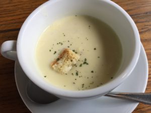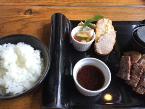 シャキシャキのサラダ、サツマイモスープ、和牛の焼いたの、キッシュ、カモのパテ … だったと思います ♬♬
