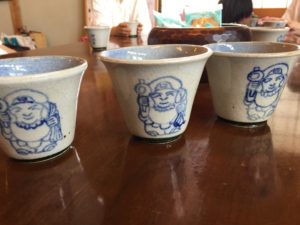 このお湯呑みは手書きで 一つ一つお顔立ちが違い トッテモ オメデタイ お茶の味がしました ♬♬