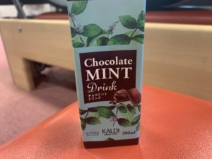 チョコミントアイスを 飲み物でいただいている、、