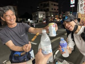 会場で一人は 解散したから… 途中で 4人で買い食いしました ♪♪